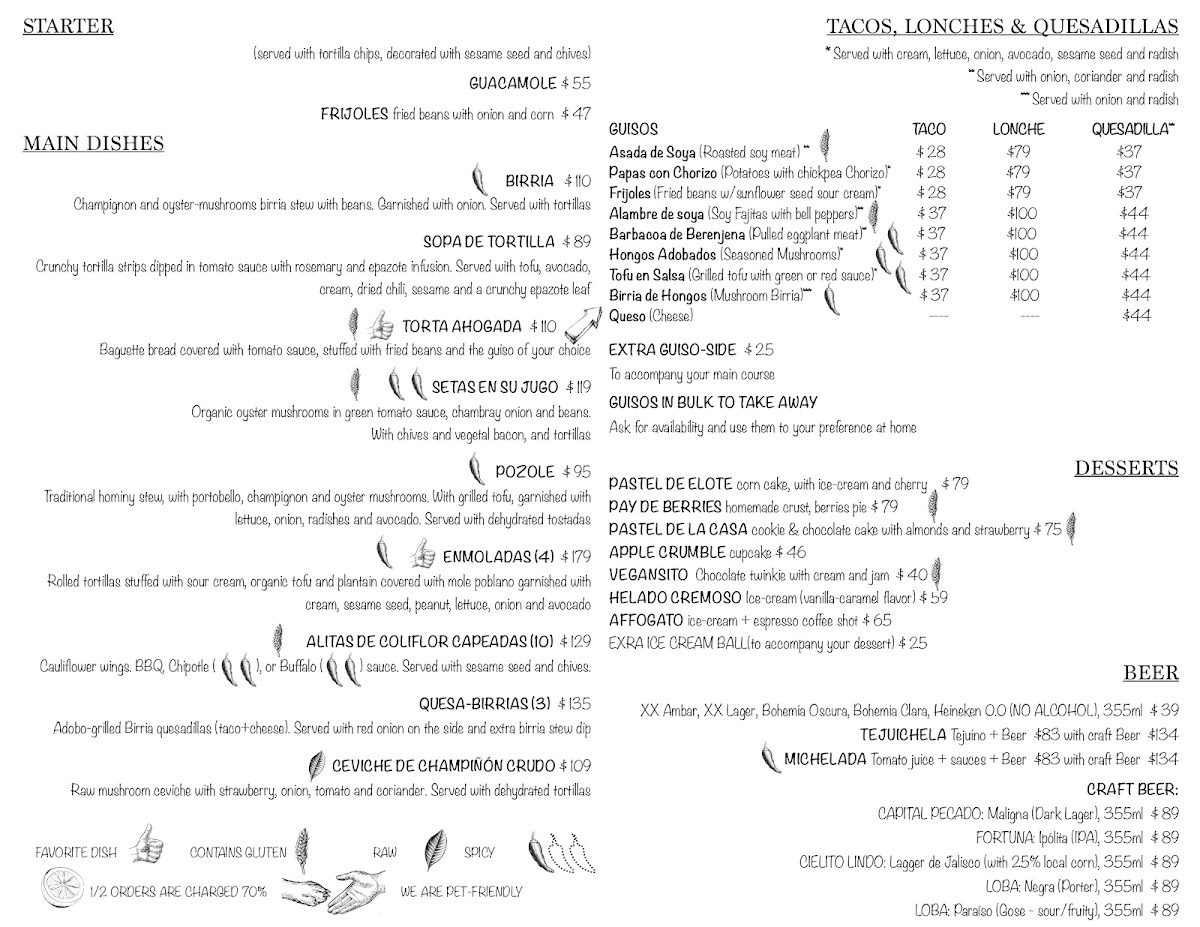 For the main attraction, the Lonches offer delightful options like the Lonche de Asada de Soya, a savory treat paired perfectly with beans and cilantro, and the hearty Lonche de Papas con Chorizo, featuring a garbanzo chorizo that’s simply unforgettable.